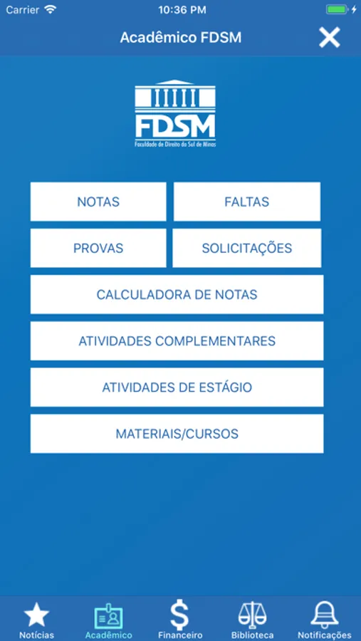 Aplicativo destinado aos alunos da Faculdade de Direito do Sul de Minas.