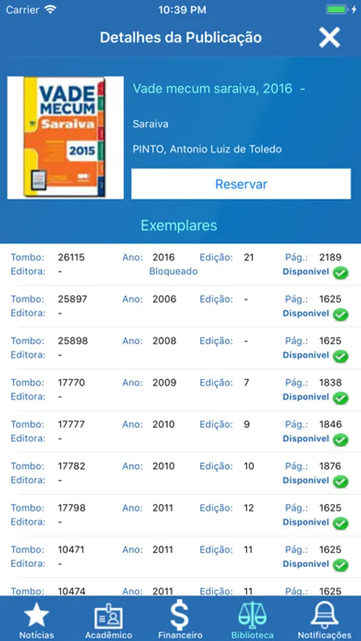 - Consulta de Acervo da Biblioteca (Reserva e Renovação);