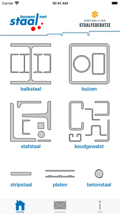 Staalprofielen is een gratis app met het voorraadprogramma van handelaren, aangesloten bij de Koninklijke Staalfederatie. Per product zijn de beschikbare afmetingen en staalsoorten vermeld die op voorraad liggen óf die binnen drie werkdagen leverbaar zijn. Ook de belangrijkste technische gegevens zijn opgenomen.