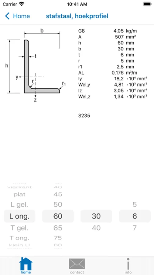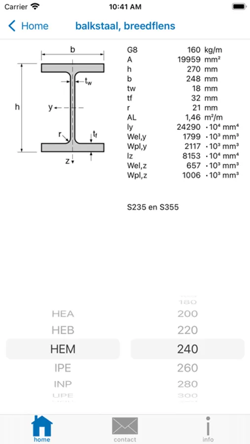 De app Staalprofielen bevat informatie over de volgende profielen: