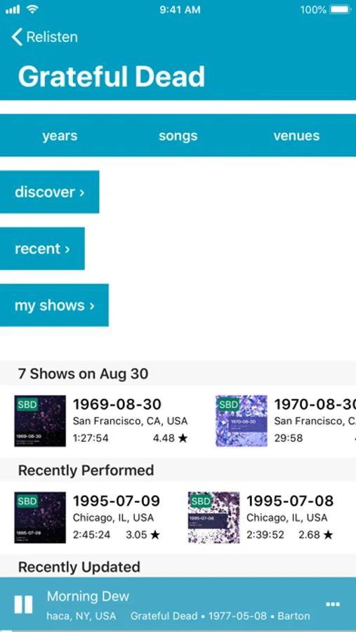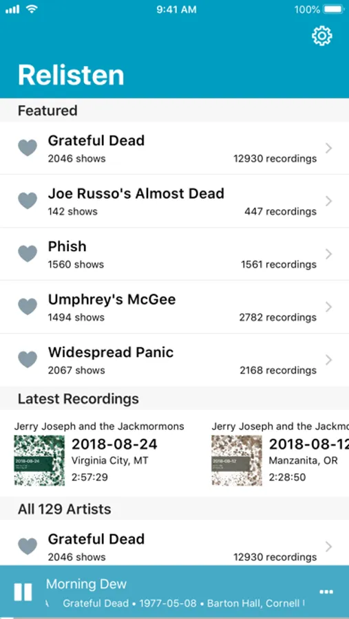 The power of Relisten.net in the palm of your hand! Listen to any song from over 100 artists!