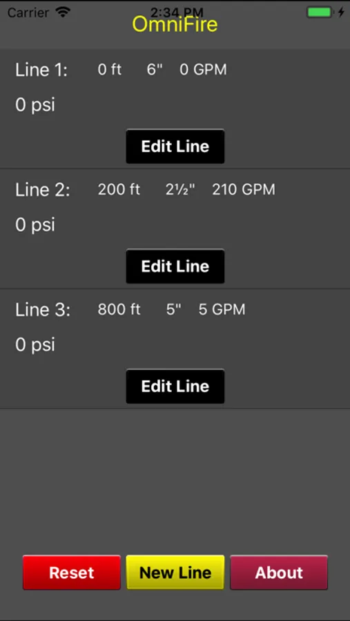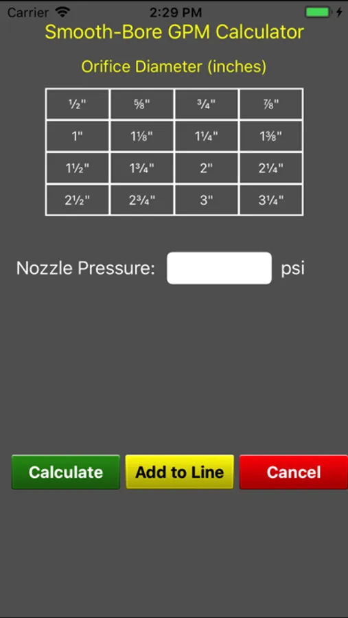 Also included is a calculator for smooth-bore nozzles which determines the flow rate based for a chosen orifice and user-entered nozzle pressure, which can be added to a given line. To support multi-line operations, OmniFire allows the pump operator to calculate multiple attack or supply lines, and displays the PDP for each line separately on a single screen.