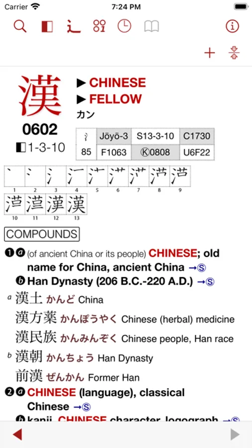 This up-to-date dictionary covers 3,002 kanji entry characters – 772 more than in the original edition – and covers all the characters in the recently revised Jōyō Kanji and Jinmei Kanji lists prescribed by the Japanese government. This app gives learners quick access to all the benefits of the print edition, plus additional functionality made possible by the iOS platform, including quick and intuitive interfaces for looking up kanji by SKIP or by radical, the ability to toggle between kana and romaji display for readings, various additional ways to look up kanji or compounds (eg. by on and kun readings, English meaning, or SKIP number), animated stroke-order diagrams, context-sensitive pop-ups, and much more.