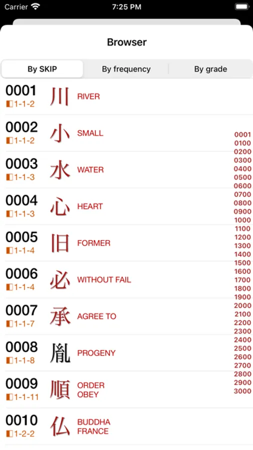 * a special Browser which allows uers to browse characters by SKIP number, frequency ranking, or Jōyō grade
