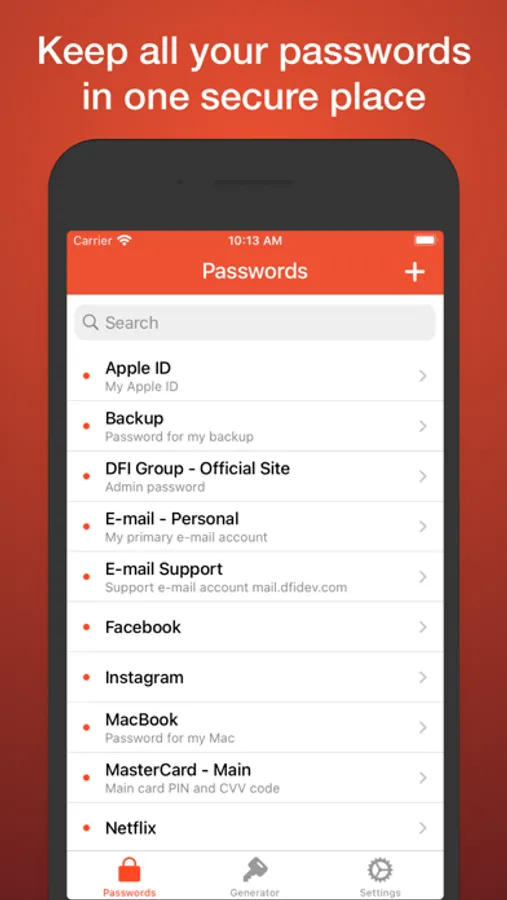 The only thing you need to remember is your Master Password to launch the app. iPassworder also offers a biometric login feature with Face ID or Touch ID, making it even easier and more secure to access your passwords.