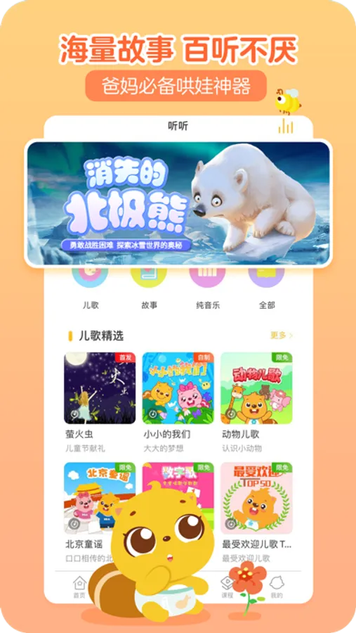 包含600+首原创儿歌在内的律动儿歌、亲子儿歌、中文儿歌、英文儿歌,经典动画片主题音乐等,内容涵盖语言能力、习惯养成、生活常识、科学知识、思想道德等。让小朋友随时随地,看听有益。