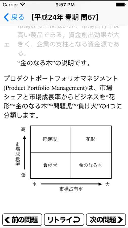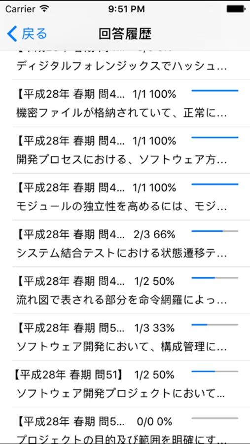 ・回答履歴が記録されるので、正解率の低い問題を選んで復習が可能です。