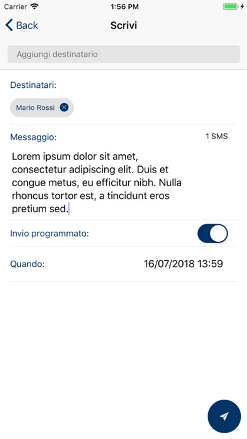 Inoltre potrai temporizzare l'invio e verificare gratuitamente se l'SMS è arrivato a destinazione.