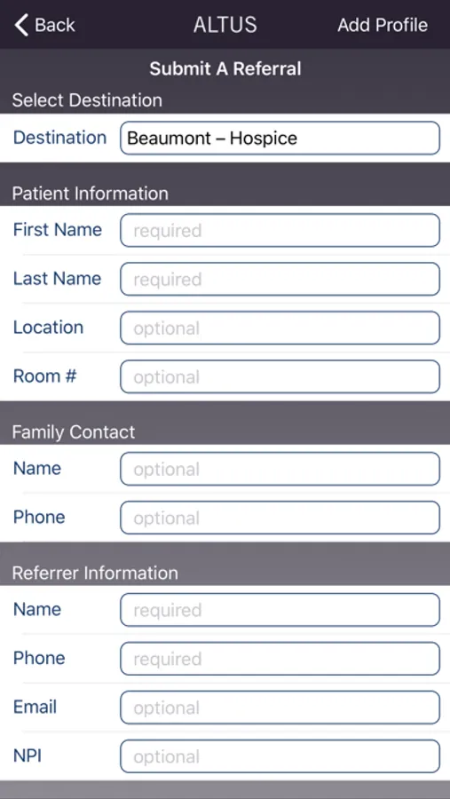 This hospice app provides a convenient way for healthcare providers to refer patients to Altus Hospice. The app also provides information about the clinical services of Altus Hospice. Healthcare providers will find guidelines on hospice eligibility. Referrals submitted through the app will be received by Altus Hospice’s Intake Department for expedient follow-up. All patient information received through the referral form will be managed with HIPAA compliance.