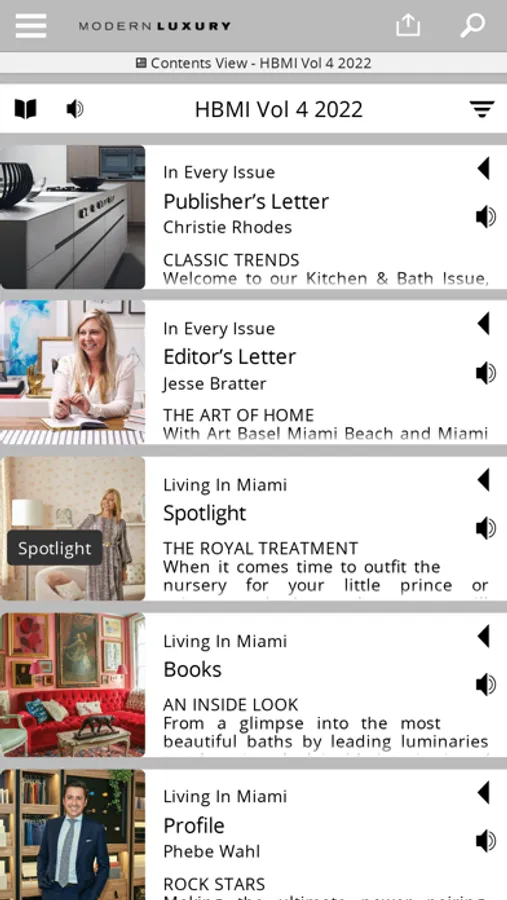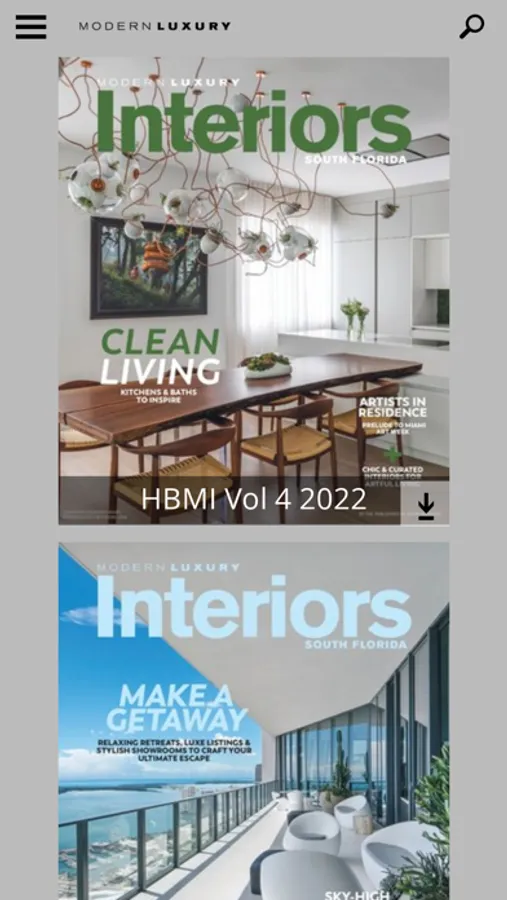 The Modern Luxury Interiors South Florida & The Caribbean app offers a luxury home design resources for both the design conscious reader and the industry professional. With interactive page flipping, a zoom feature, bookmarking, searching and sharing your favorite articles allow an enhanced magazine experience right anywhere and anytime you choose to read.