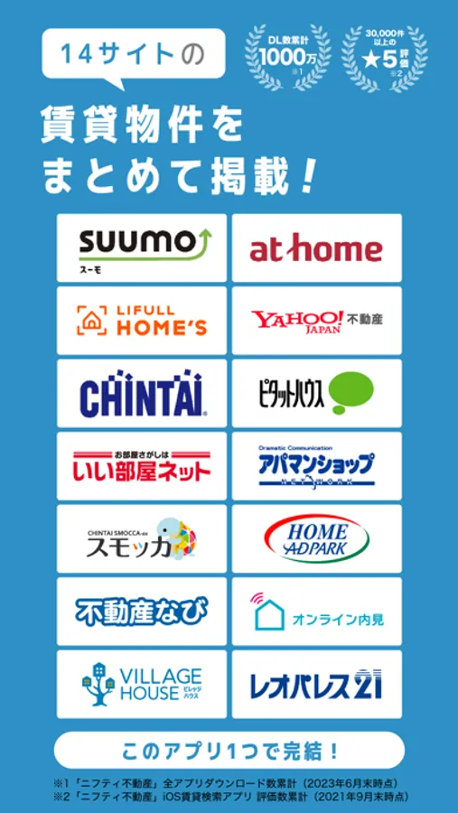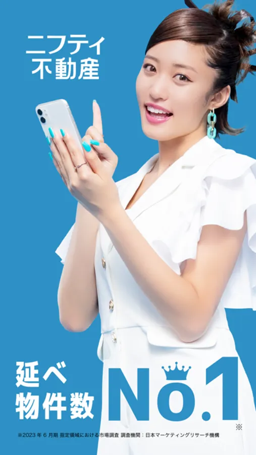 (※2)「ニフティ不動産」全カテゴリ合計延べ物件数(日本マーケティングリサーチ機構調べ(2023年6月期))、本アプリは賃貸物件のみ掲載