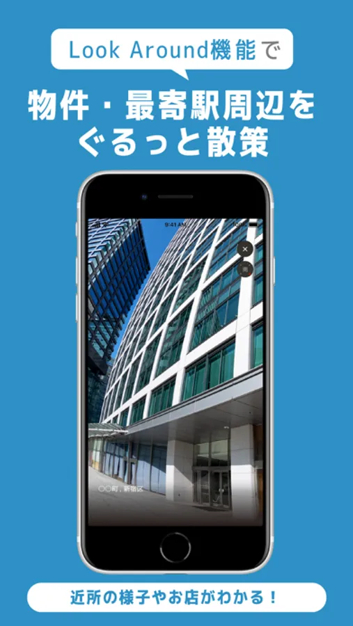引っ越した後の生活をイメージしやすくするために、物件周辺をバーチャル散策できる「Look Around」機能も搭載。(※iOS16以上の端末・Look Around対応地域で利用可能)