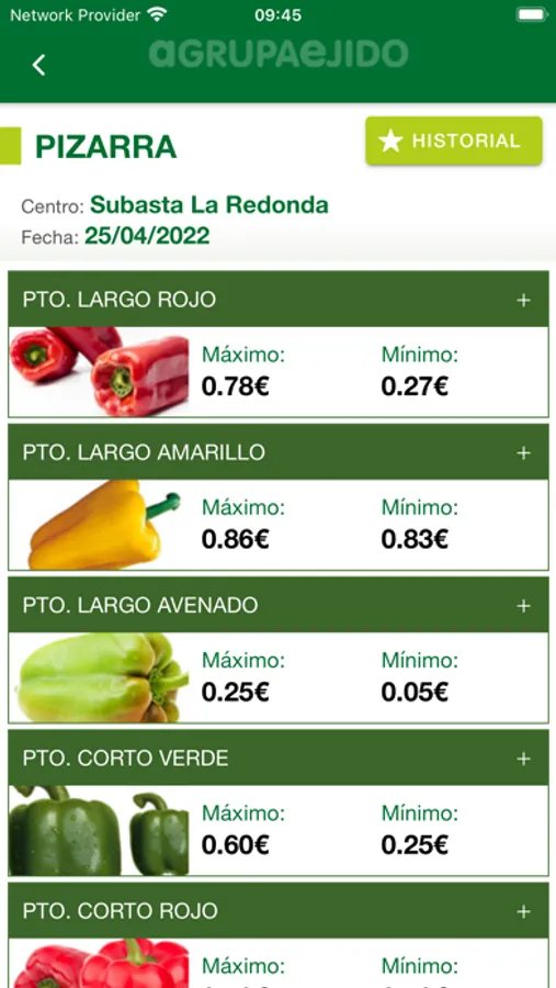 - Pizarras de precios de nuestros centros de subasta.
