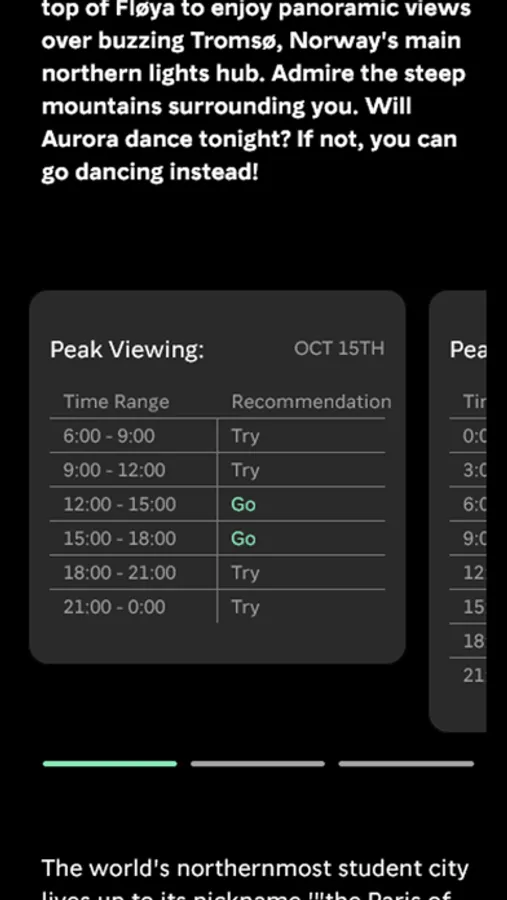 Visit Norway, the official travel guide to Norway, gives you a user-friendly northern lights forecast app with an overview of places known as “northern light cities” in Norway. The interface of the app is slick, yet simple, which sought to provide nature-loving explorers guidelines in regards to when to go, where to go and how to get there.