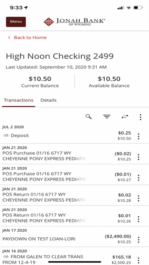 -- Jonah Bank of Wyoming will not save your password, account numbers, transaction information or balances on your device