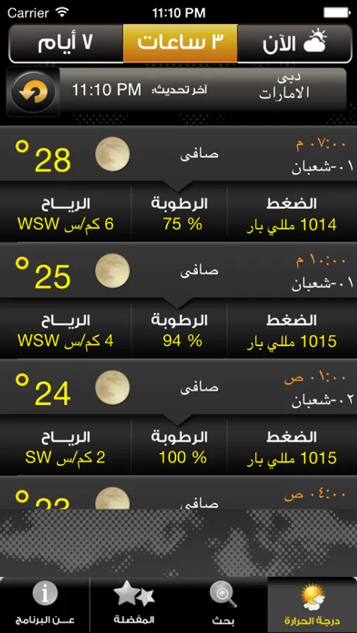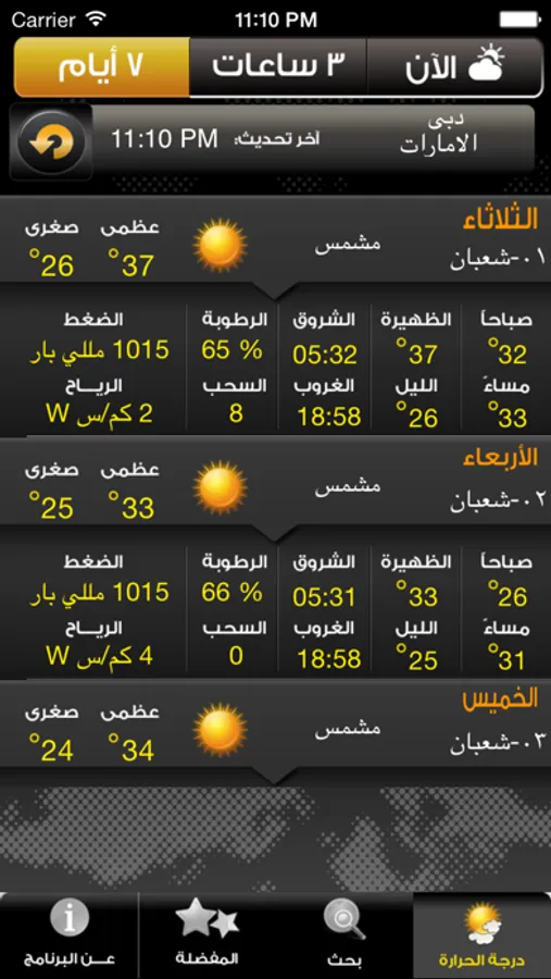 ب- النسخة الكاملة :ويمكنك التوقعات ل ١٤ يوم و ٣ ساعات لمدة ٥ ايام