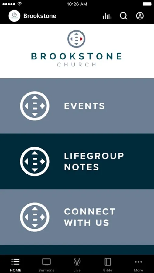 The Brookstone Church app was developed with the Subsplash App Platform.
