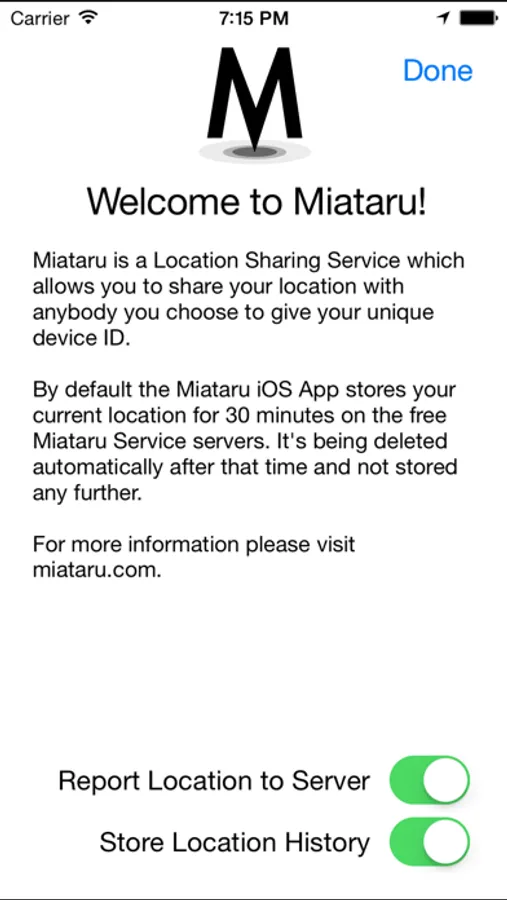 This is the Miataru iOS App that allows you to use the free Miataru service or your own Miataru server instance.
