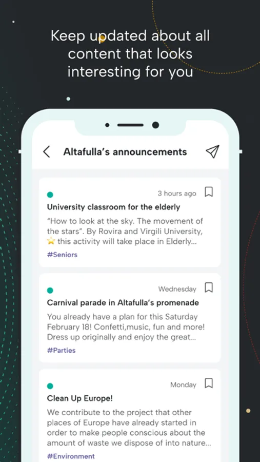 The reference App to connect with your local environment 100% FREE. It will allow you to be informed of the latest news and events in your town, associations, schools, sport clubs... The network already has more than 500 agoras to which you can connect!