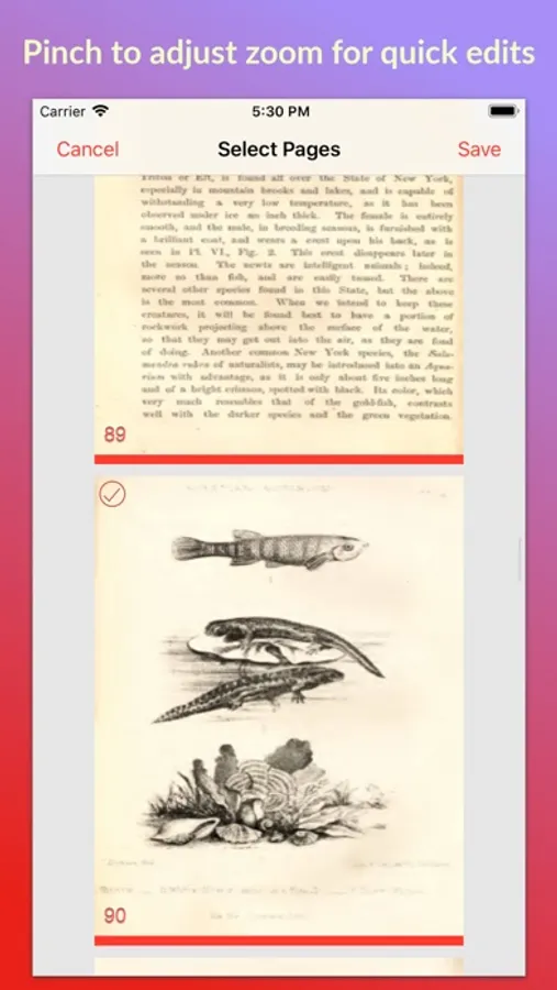 Use the pinch gesture to zoom in and out of single and multiple page views for quick editing.