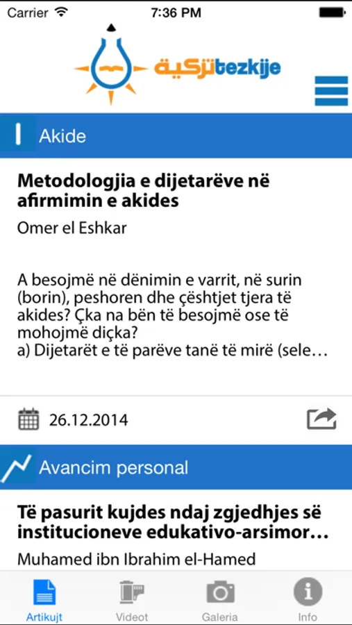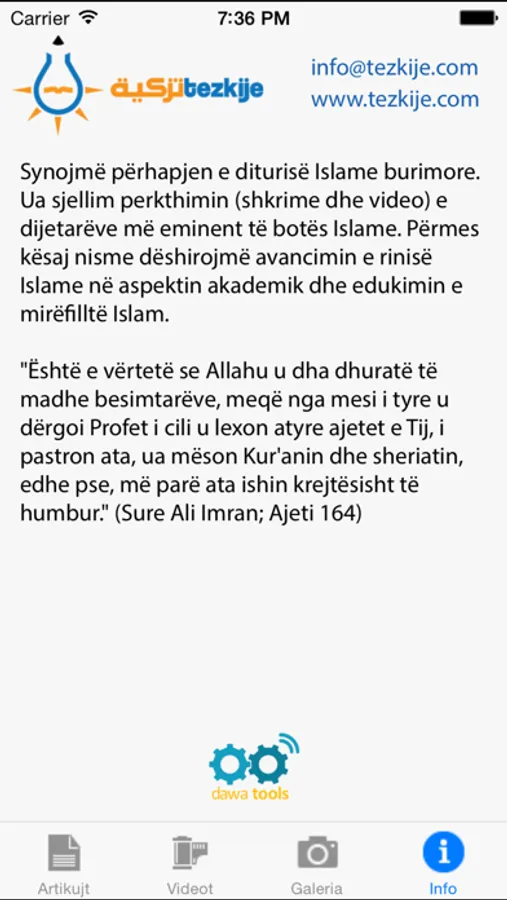 Aplikacioni 'Tezkije' ofron versionin mobil te webfaqes tezkije.com, gjithashtu duke ju informuar cdo moment per te rejat e publikuara.