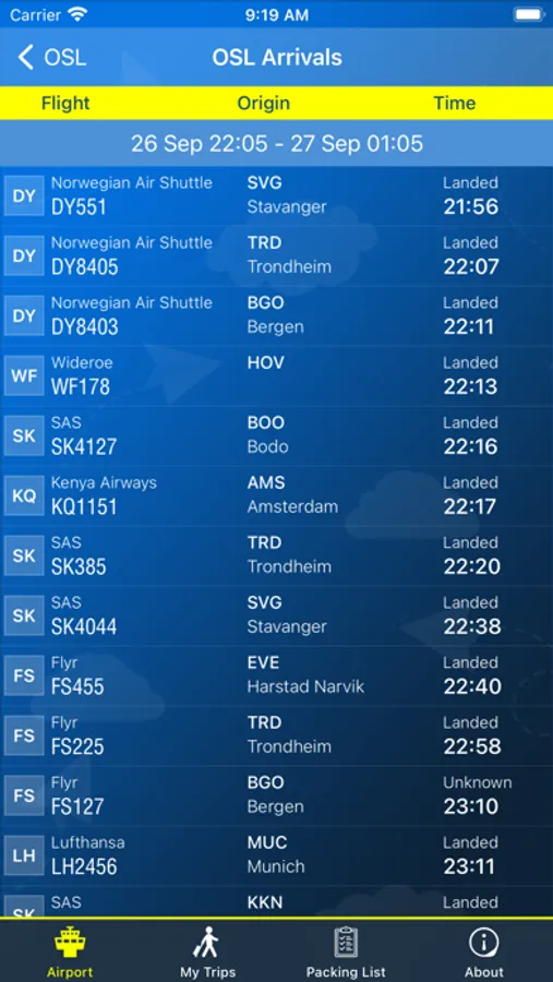 App lets you know if your flights delayed or cancelled and gives you the tools needed to quickly find an alternate flight from Oslo.