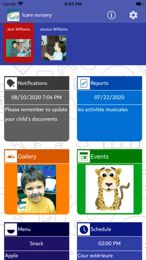 - View childís photos as soon as they are taken in class and events and share them directly