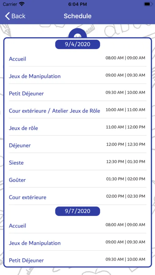 - Review the daily schedule and food menus