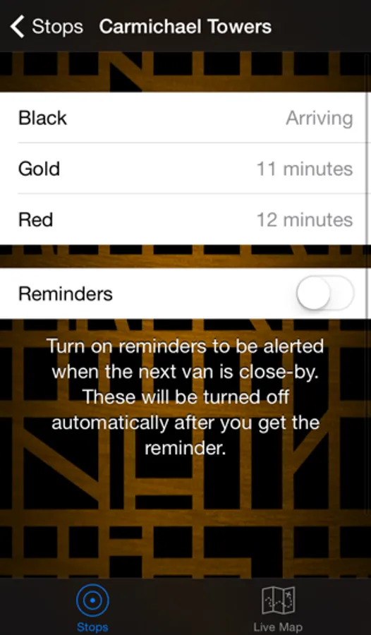 - Get a notification on your iPhone when a van is 2 minutes away from a stop you're interested in.