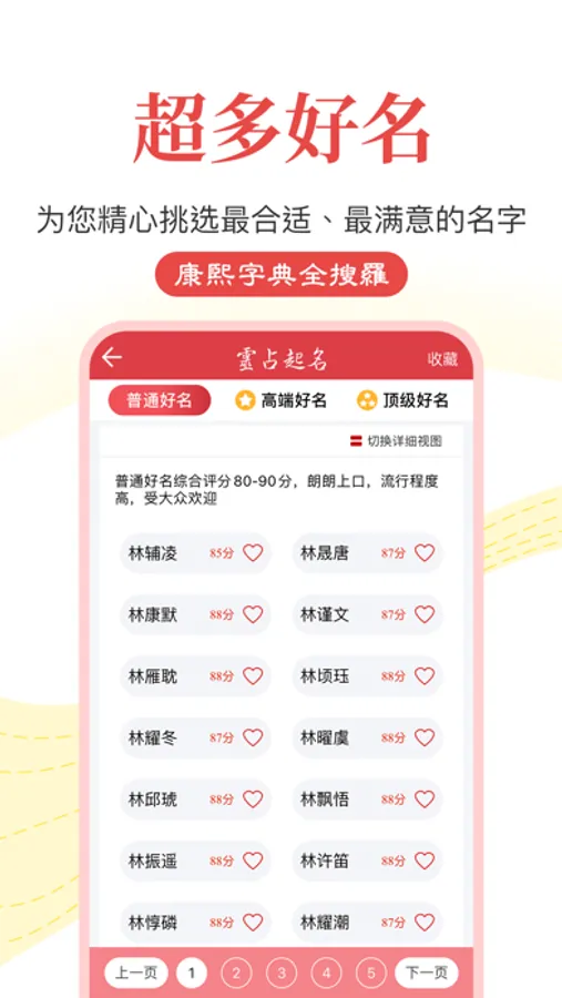 • 提供收藏名字功能,方便准爸妈们收藏喜欢的姓名。