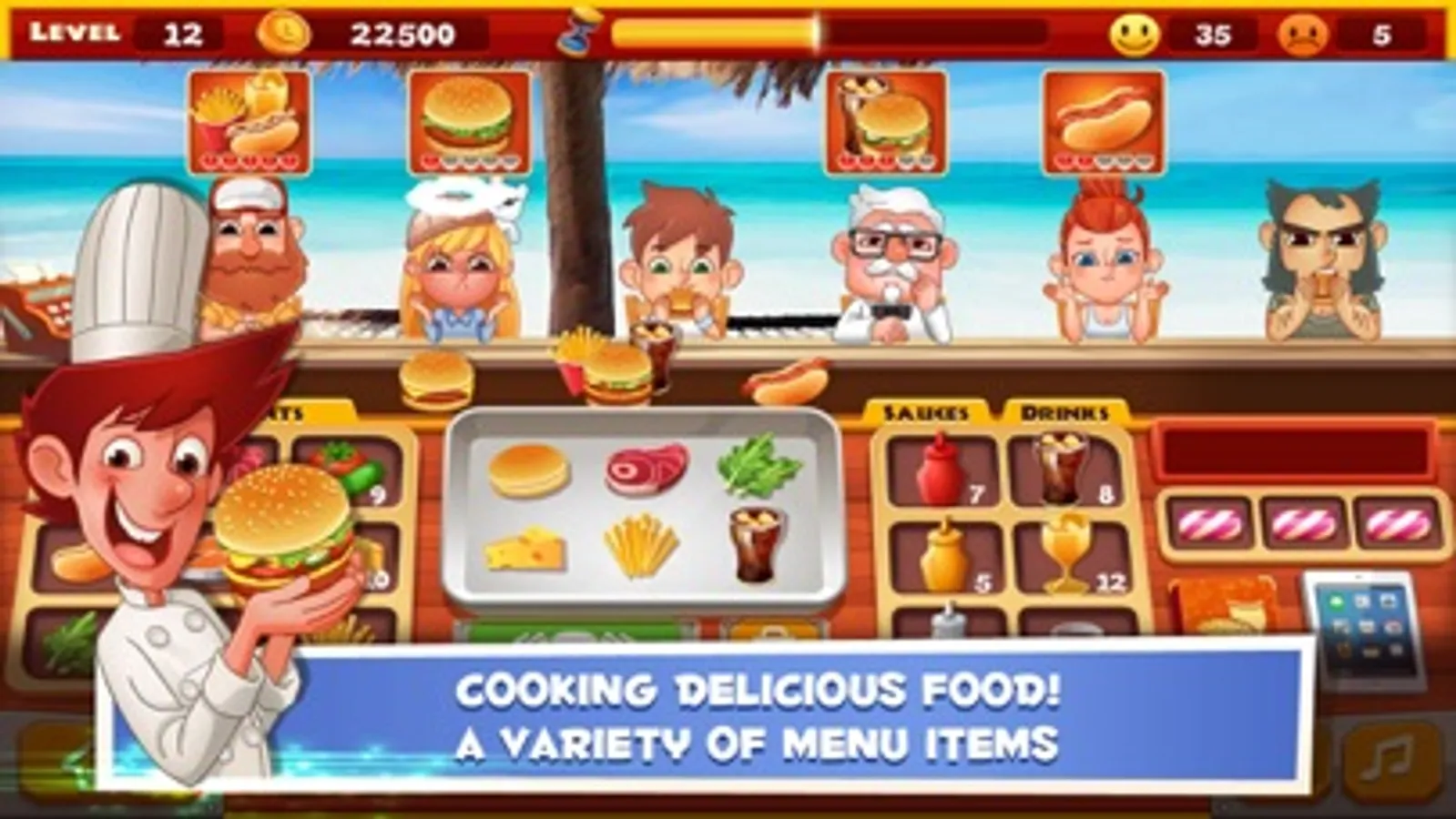 Develop expert culinary skills in Burger Chef, a gripping Time Management game with cooking different foods! Take command of the kitchen and demonstrate the skills of a master chef. Start with hamburgers and hot dogs and work your way to becoming the best known restaurant in the country! Decorate your restaurant, buy new furniture, find awesome accessories, and upgrade your kitchen to become a Burger Chef!