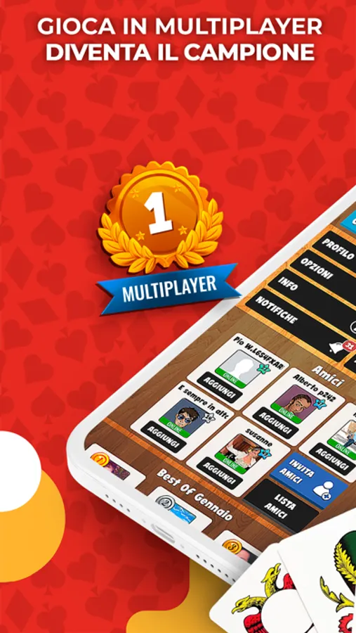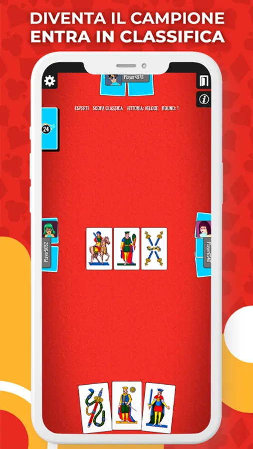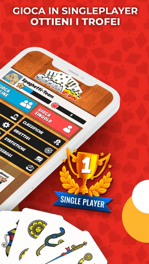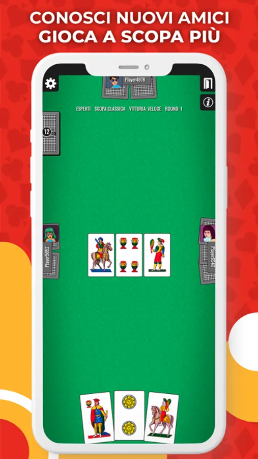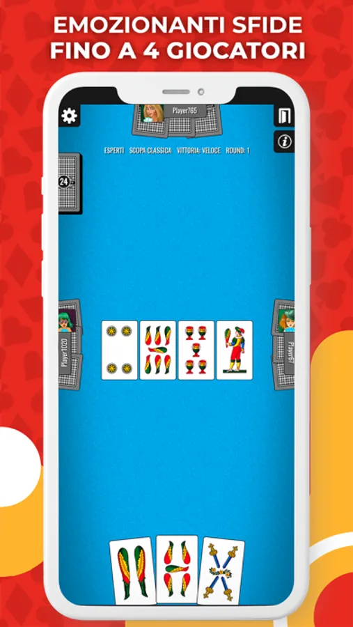 Play from your smartphone or tablet, in horizontal or vertical mode, Scopa Più will win you over with its speed, fluidity, and precision. You will feel as if you´re playing with your friends! Start playing directly in single-player mode without even registering, or log in via Facebook®, Google® or email to play the social and competitive matches!
