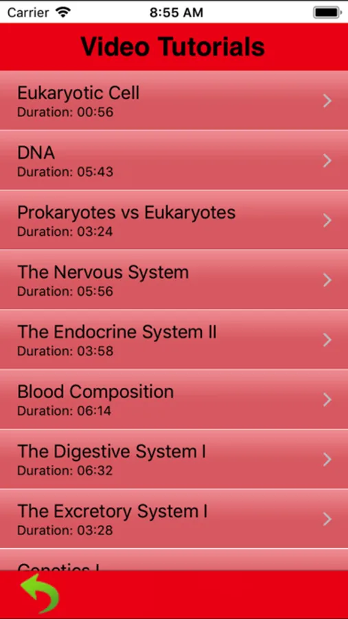 Videos index: Eukaryotic Cell, DNA, Prokaryotes vs Eukaryotes, The Nervous System, The Endocrine System II, Blood Composition, The Digestive System I, The Excretory System I, Genetics I, Genetics II.