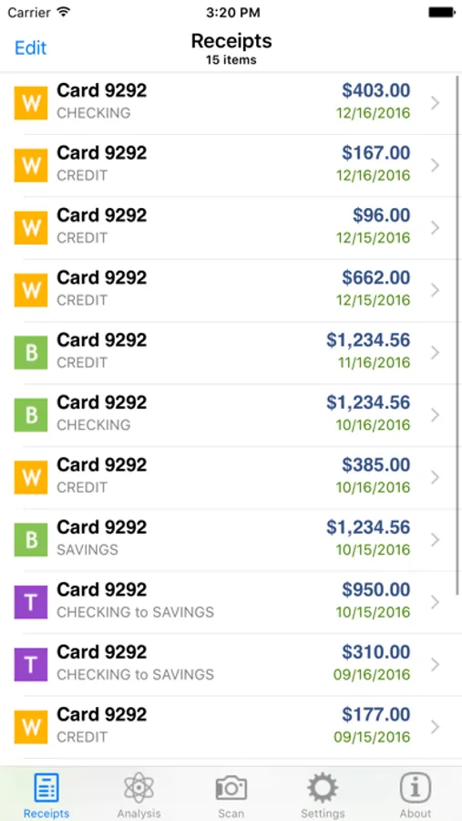 - Analyze the receipt data and calculate Withdrawal Total Amounts per Card and Account