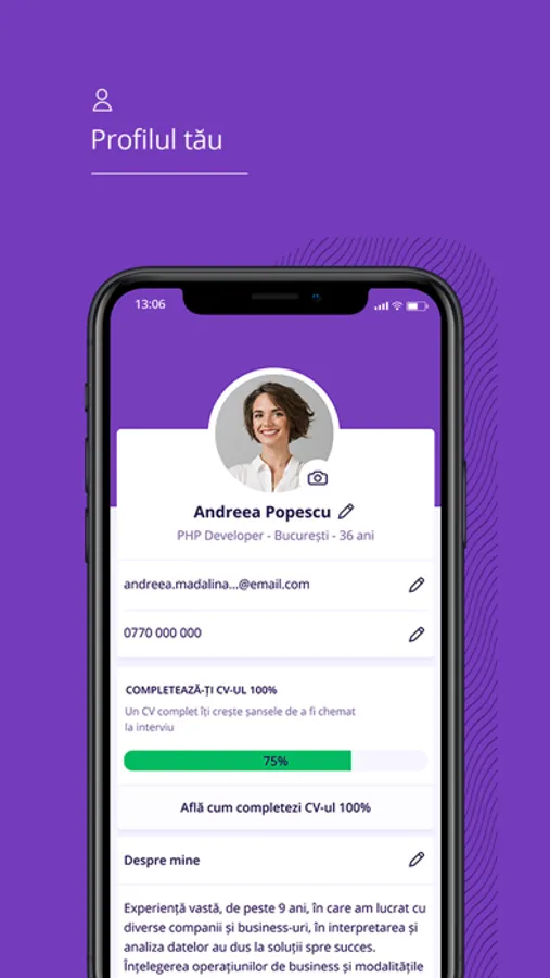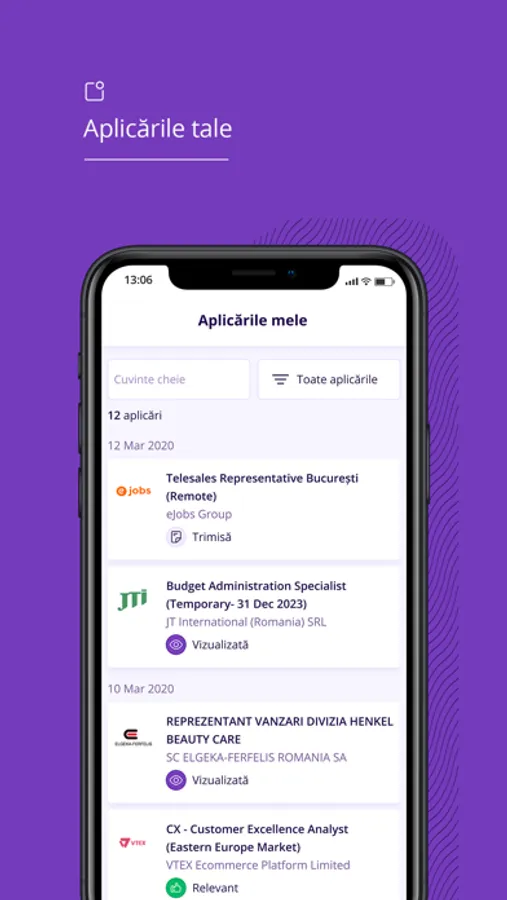 Descarcă acum aplicația eJobs, construiește-ți CV-ul de candidat ideal, descoperă ce oferte de muncă ți se potrivesc, aplică rapid și ușor, pregătește-te pentru interviu, apoi așteaptă să vezi ce oferte de muncă primești!