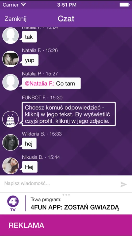# Rozmawiaj na czacie w aplikacji z innymi widzami i ludźmi z TV!