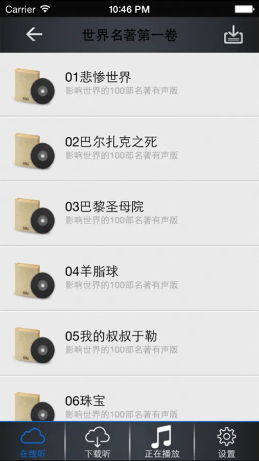 喜欢巴尔扎克,想要体验《钢铁是怎样炼成的》,希望倾听《静静的顿河》,幻想跟《简·爱》一起经历《苦难的历程》,或者与《安娜·卡列尼娜》共度别有风味的《乡村礼拜日》……听经典世界名著,体验经典文化大餐! 百位演艺明星配音配乐,百部经典名著另类诠释。