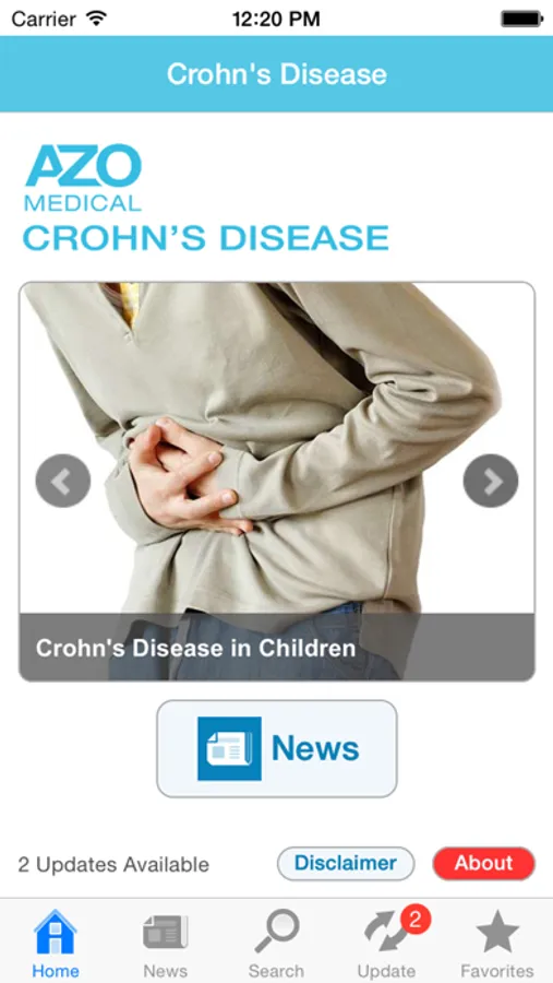 Crohn’s Disease by AZoMedical.com is a free app that provides regularly updated information and news on Crohn’s disease.