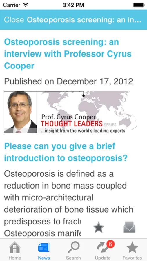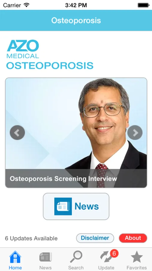 Osteoporosis by AZoMedical.com is a free app that provides regularly updated information and news on osteoporosis.