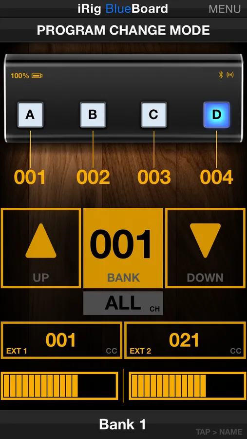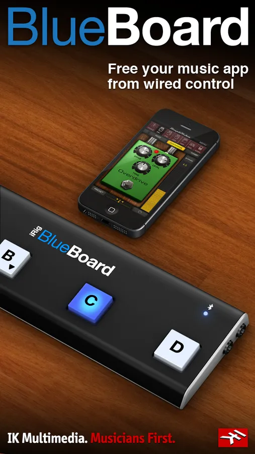 THE IRIG BLUEBOARD APP FOR IPHONE, IPAD, AND IPOD TOUCH, WORKS IN TANDEM WITH IK’S NEW IRIG BLUEBOARD, THE FIRST WIRELESS MIDI PEDALBOARD FOR IOS AND MAC, CONTROLLING THE SETUP AND CONFIGURATION OF THE HARDWARE UNIT.