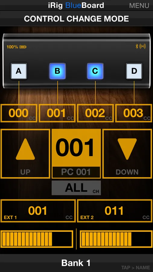This app allows the communication between the iRig BlueBoard controller and any Core MIDI apps running on your iOS device. Also, iRig BlueBoard app lets you setup the hardware unit, and configure its 32 banks of settings for iRig BlueBoard’s 4 footswitches. Setup the MIDI parameters you want to control, switch between the PROGRAM CHANGE and CONTROL CHANGE operating modes, set the MIDI channel iRig BlueBoard will transmit on, browse and rename banks, browse patches in Core MIDI apps, and much more.
