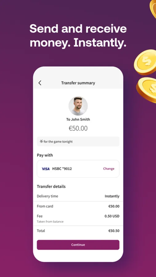 • Load funds to your account via credit or debit card, bank transfer, or local payment methods;