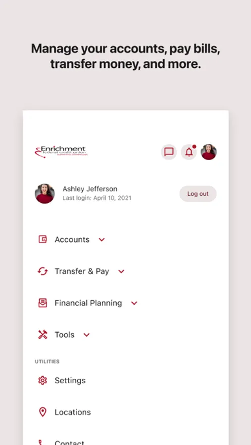 Easily make transfers to other members and explore great tools for budgeting and creating savings goals.