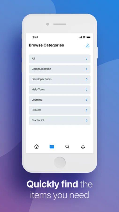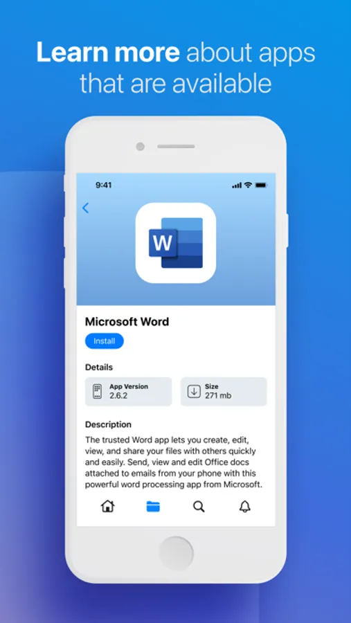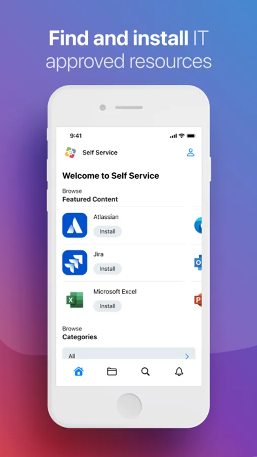 Using the intuitive interface, you can browse and install trusted apps and books from your organization, update configurations, and receive real-time notifications for available services without having to contact IT.