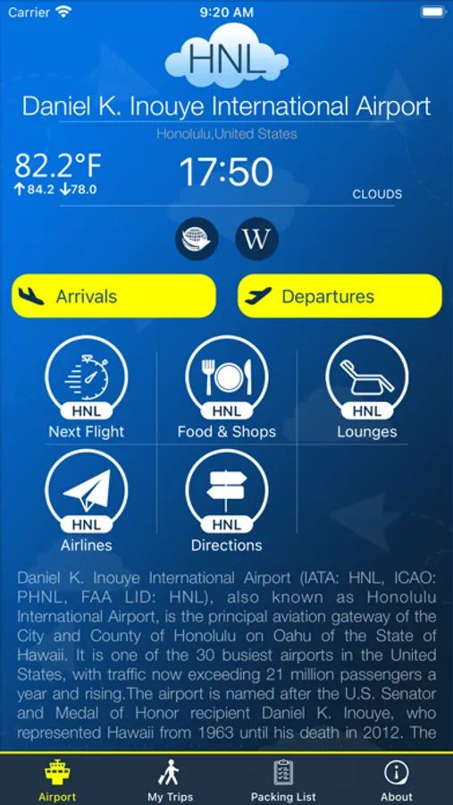 Daniel K. Inouye International Airport (IATA: HNL, ICAO: PHNL), also known as Honolulu International Airport, is the principal aviation gateway of the City and County of Honolulu on Oahu of the State of Hawaii.