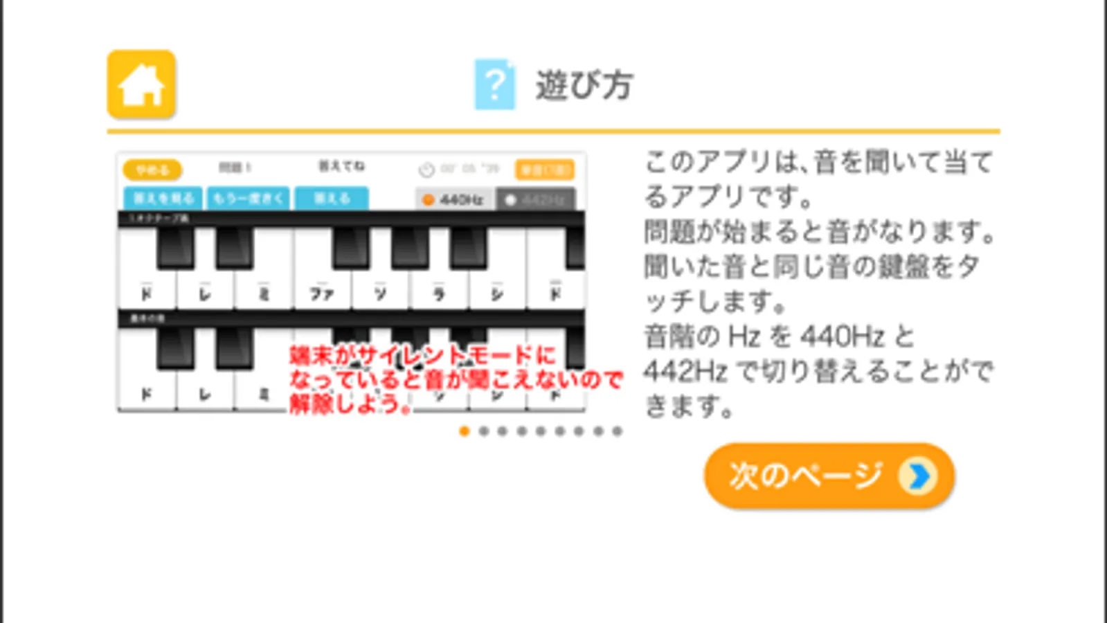 このアプリは、音を聞き、どの音かを当てるアプリです。