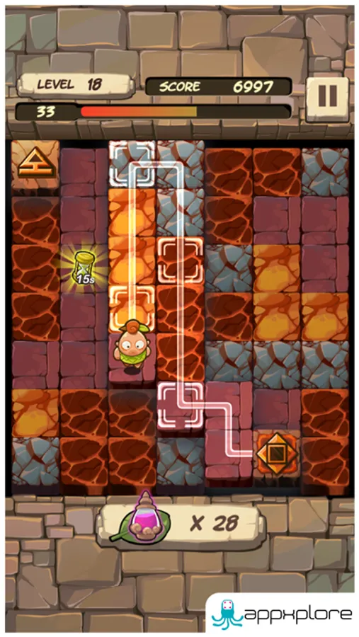 Caveboy Escape offers innovative puzzle gameplay, utilizing subtle match-3 and connecting tile gameplay that feels fresh and will tickle puzzle gamers’ brains. It takes a keen eye and quick thinking to navigate Caveboy to the exit – Finding the right path will be a challenge as the size of the labyrinth continues to grow. Time is also of the essence as Caveboy must reach the exit or the maze will collapse.