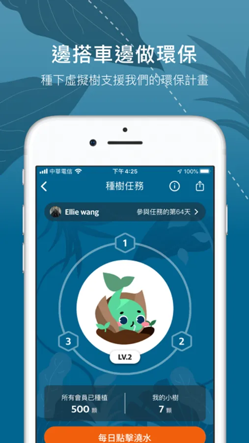每日幫虛擬種子澆水,累積9天即可養成一棵虛擬小樹,紀錄每日搭公車的環保行動,並持續透過種樹任務集氣,鼓勵支持Yahoo養護真樹公益活動
