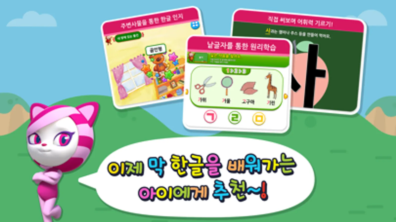 재미있는 놀이를 통해 한글을 배우고, 자연스럽게 한글을 깨칠 수 있도록 도와 줍니다.