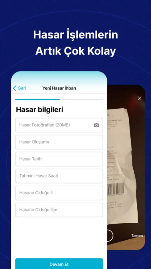 -Araç sigortalarınızla ilgili kasko veya trafik poliçe detaylarınızı görüntüleyebilir, Kasko poliçeleriniz özelinde tüm hasar dosyalarınızın statü takibini ve tamir edilen hasarlara ilişkin ihbarları yapabilir bunun yanı sıra mini onarım/çekici hizmetleri için talepte bulunabilirsiniz.